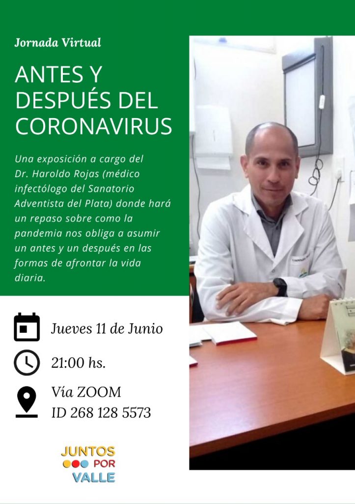 La charla virtual se realizará a partir de las 21 hs de este jueves 11 de junio y tendrá un tiempo de 60 minutos. El Doctor Haroldo Rojas es infectógologo del Sanatorio Adventista del Plata y médico del estilo de vida.