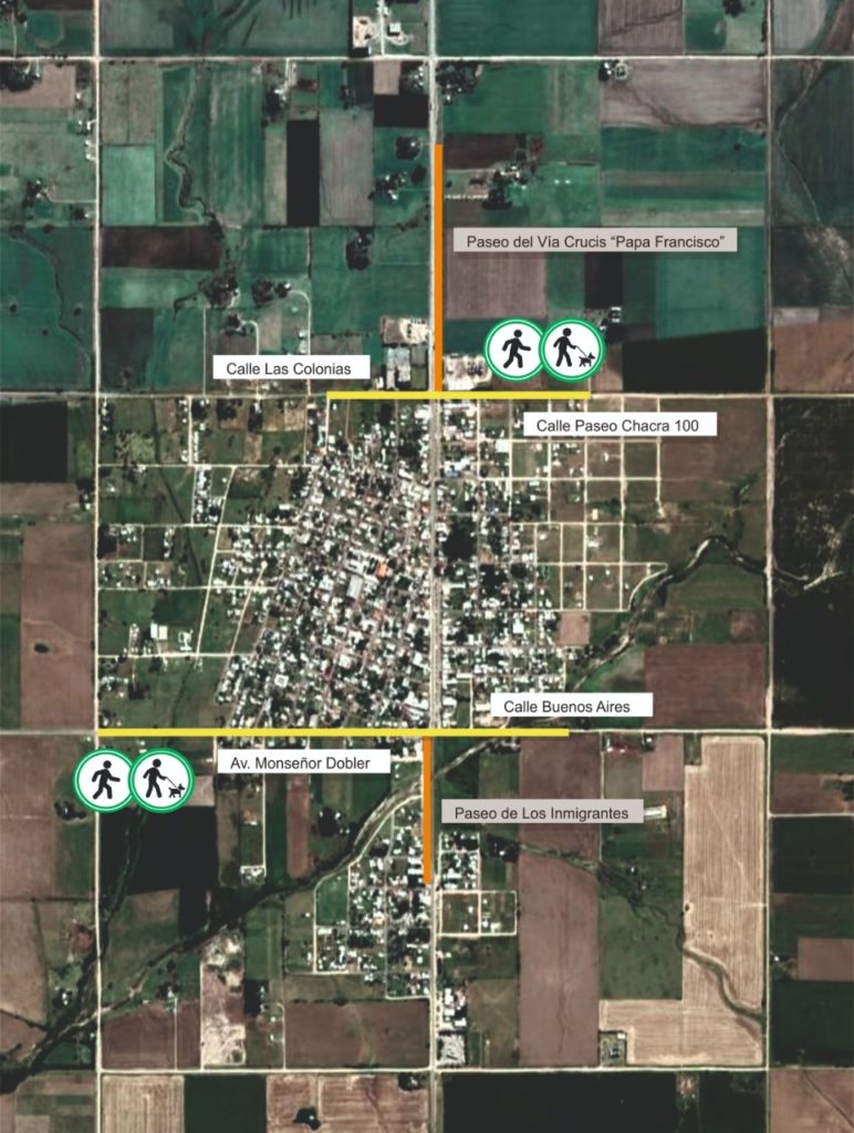 Zona Sur: Punto de inicio: Ruta 11 y Av. Monseñor Dobler. Contamos allí con tres caminos habilitados para la caminata:
