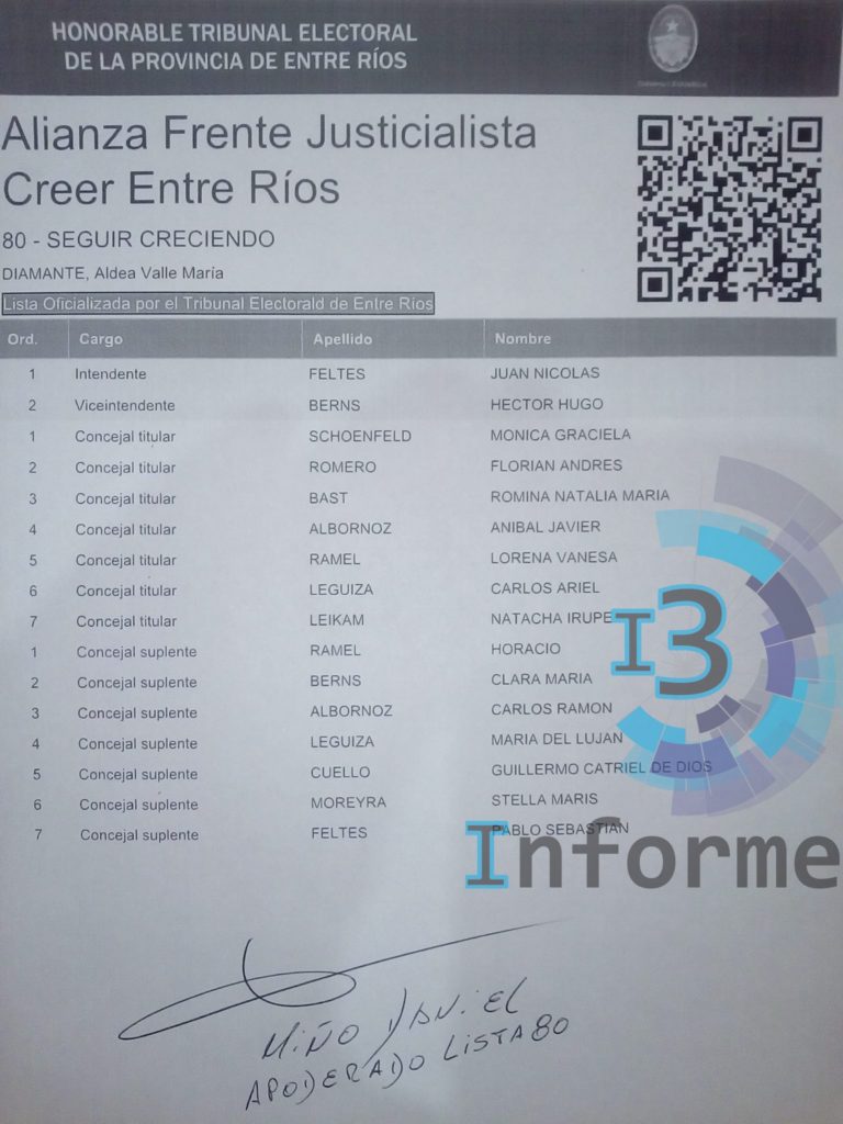 #Informe3Elecciones: El partido justicialista lleva a Feltes como candidato a intendente de Valle María Publicada el 2 marzo, 201911 marzo, 2019 por Informe 3 El partido justicialista presenta su lista de intendente, vice y concejales para participar de las elecciones 2019. La encabeza Juan Feltes como intendente y Schoenfel Mónica como primera concejal.