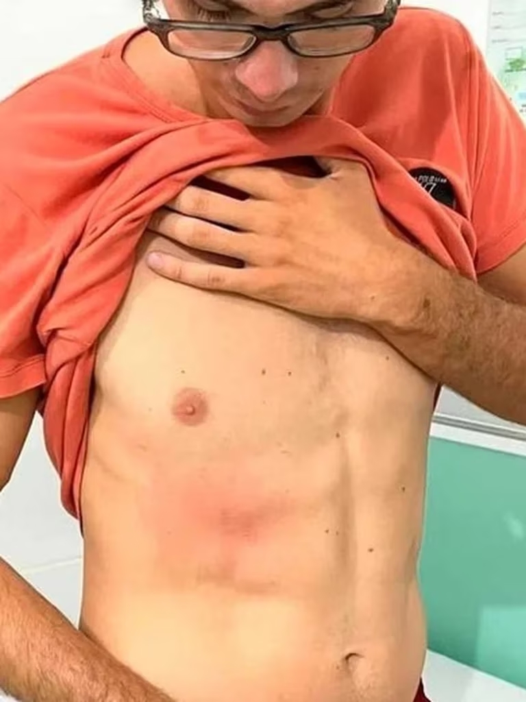 El hecho ocurrió el pasado fin de semana en el balneario Meia-Praia Beach, cuando un médico brasileño, de 43 años, luego de agredir a otras argentinas, golpeó al joven provocándole tres lesiones: fractura de una costilla, pinzamiento en una vértebra y una astilla en el cúbito del antebrazo.