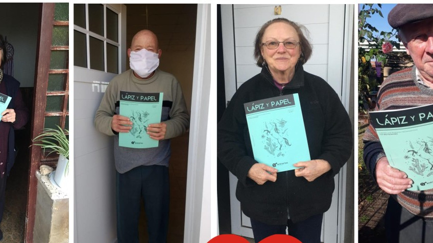 Los voluntarios, además de ayudar a los abuelos con sus compras y trámites, han estado llevándoles a sus hogares copias de un cuadernillo pensado para su recreación durante el tiempo de aislamiento social.