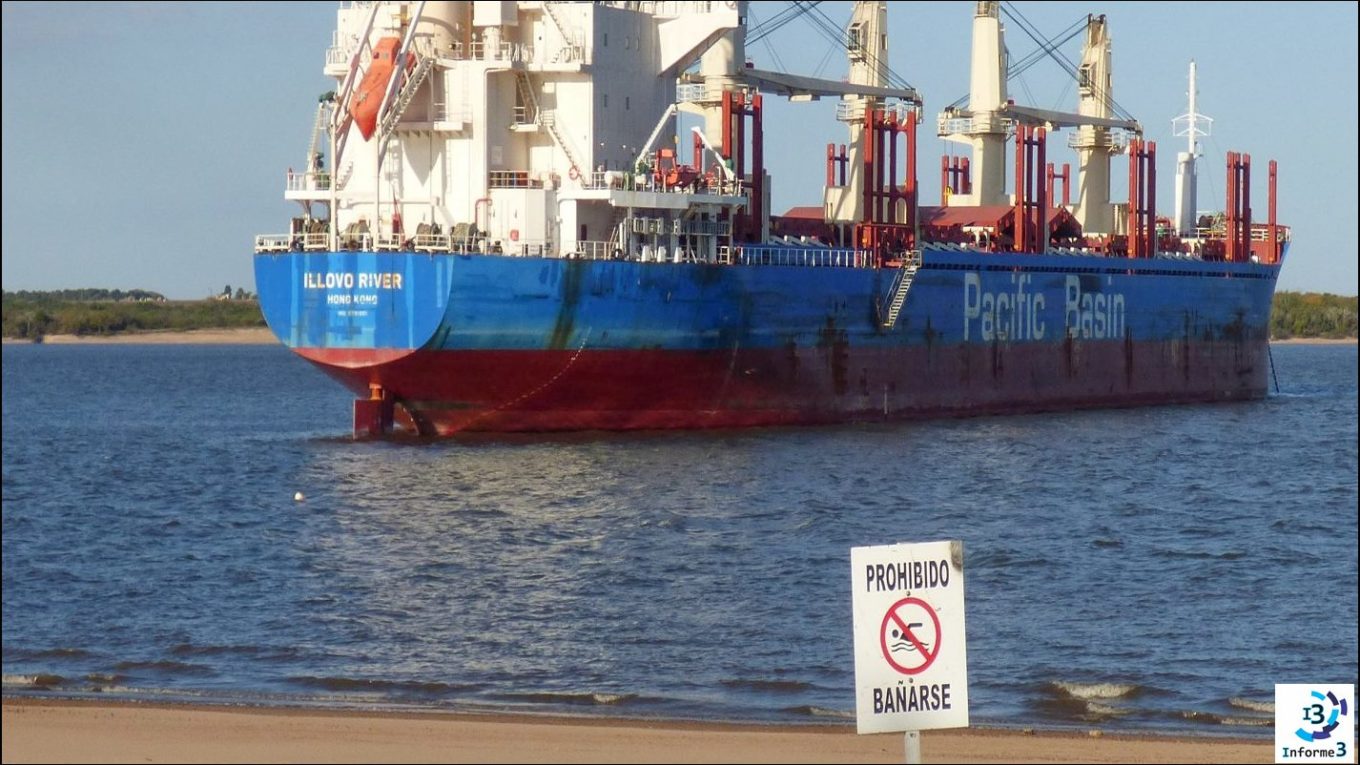 Desde el pasado fin de semana se encuentra frente a las costas del balneario Banco Pelay, en la rada exterior del puerto de Concepción del Uruguay, el ultramarino Illovo River para concretar un nuevo embarque de troncos de madera de pino proveniente de distintas plantaciones de la región.