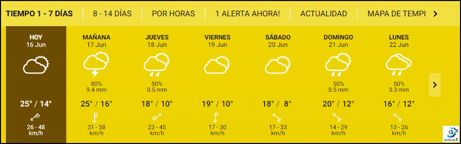 El Servicio Meteorológico Nacional -SMN- anuncia mínimas de entre 11° C y 14°C y máximas de entre 23°C y 27°C para este martes en la región.