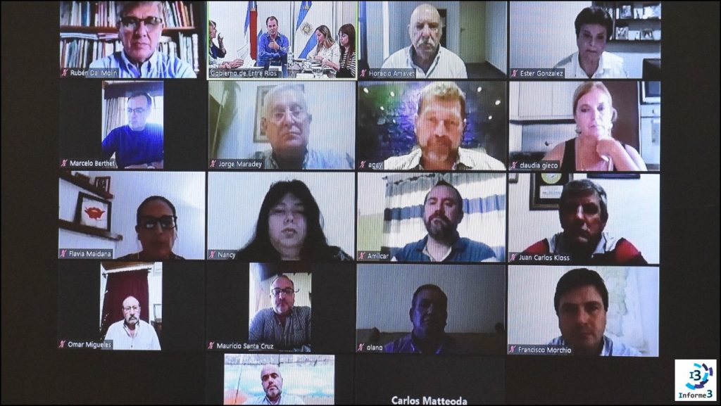 A través de una videoconferencia, la senadora Claudia Gieco se comunicó con el resto de los legisladores y el gobernador Gustavo Bordet. Junto a la vicegobernadora Laura Stratta y el gabinete de ministros, el mandatario dialogó sobre la situación actual y puso de relieve la importancia de articular la tarea, estar a la altura de responsabilidad que cada uno tiene desde su lugar y atender las demandas y las expectativas de la sociedad.