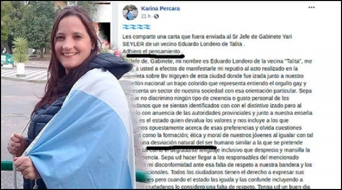 Karina Percara, dirigente del radicalismo y de Cambiemos de Concepción del Uruguay, compartió en sus redes sociales un escrito insultante hacia las personas que conforman la comunidad LGBTIQ+. Allí se define a la homosexualidad como “una desviación natural”. Otros dos medios locales publicaron sendas cartas agraviantes en el mismo sentido, en una aparente avanzada discriminatoria sin precedentes cercanos.