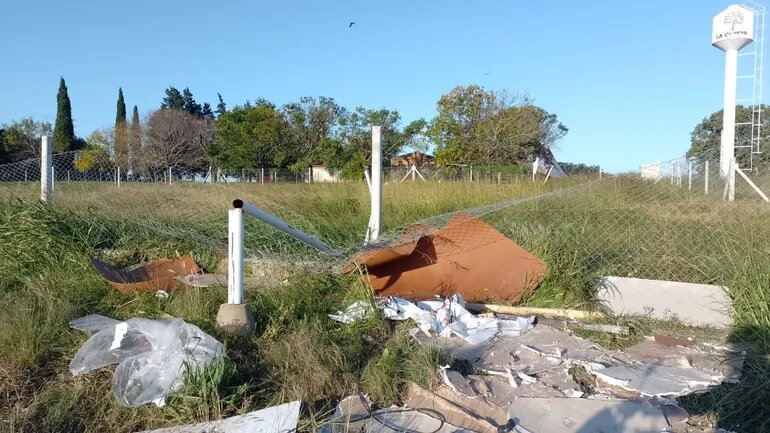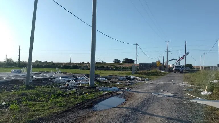 Una casa prefabricada resultó destruida por la tormenta de esta madrugada. Ocurrió en un terreno en Colonia Ensayo, donde también se produjo la voladura del techo de una construcción, la caída de una columna del tendido eléctrico del loteo y un poste de alumbrado público, entre otros inconvenientes.