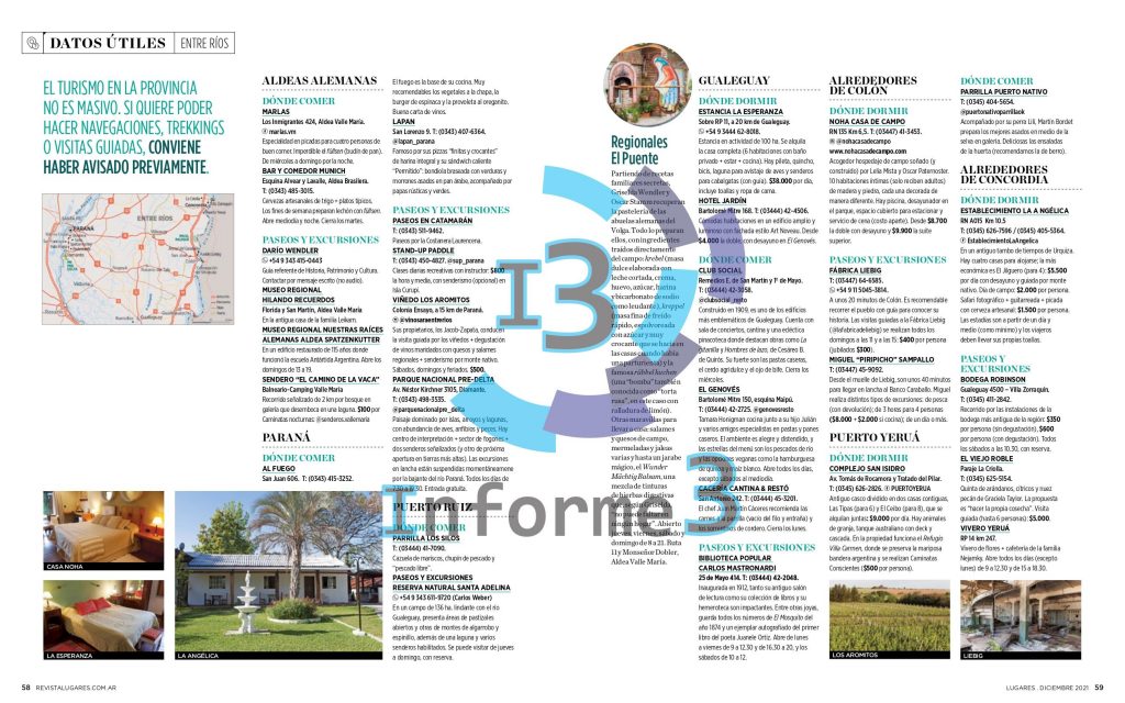 Se trata de la revista Lugares, suplemento de turismo del diario La Nación. En la publicación que sale este viernes 3 de diciembre de 2021, se brinda información sobre la provincia de Entre Ríos. Un equipo de este medio grafico estuvo visitando Valle María meses atrás.
