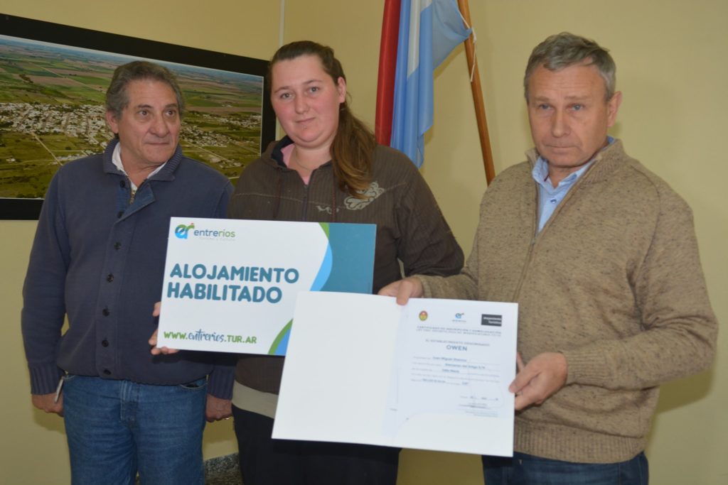 Esta mañana, en la Municipalidad de Valle María se entregaron las certificaciones a alojamientos turísticos de la localidad. La entrega estuvo a cargo del Director de Servicios Turísticos, Capacitación y Estadísticas de la Provincia de Entre Ríos Romero Alberto Pisano, acompañado por el intendente Arsenio Ortman.