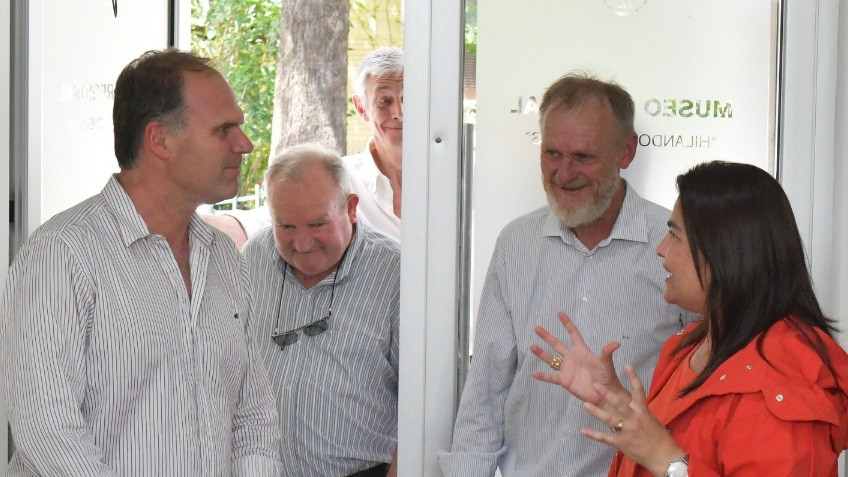 La presidenta de la Fundación Iapser, Mariel Ávila, fue recibida por el intendente Mario Sokolovsky, y el Coordinador de Cultura, Darío Wendler. Participó de la visita, además, el cura párroco Carlos Haberkorn. Juntos recorrieron las dependencias del Museo Regional «Hilando Recuerdos».